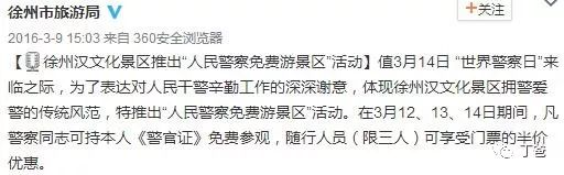 2017年,全国各地有不少的景区相继对当地公安民警或者全省、乃至全国公安民警实行免票、免费的优惠政策。