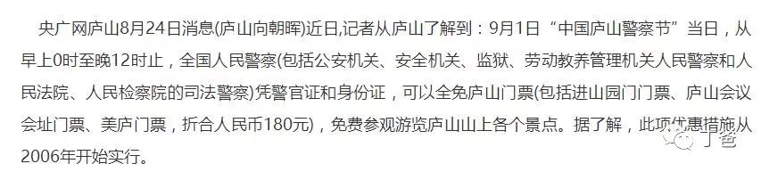2、庐山在每年9月1日对全国民警免费开放