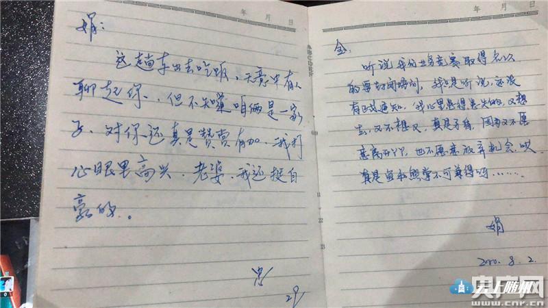 在任亚娟眼中,生活里老实憨厚的丈夫不善言辞,而在留言本里,他却变得柔软而深情,还常用“亲爱的娟”称呼自己。“每次看见这几个字心里就暖暖的。”任亚娟说。