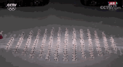 △全场共同倒计时,随后钟声响起,平昌冬奥会开幕式拉开帷幕。
