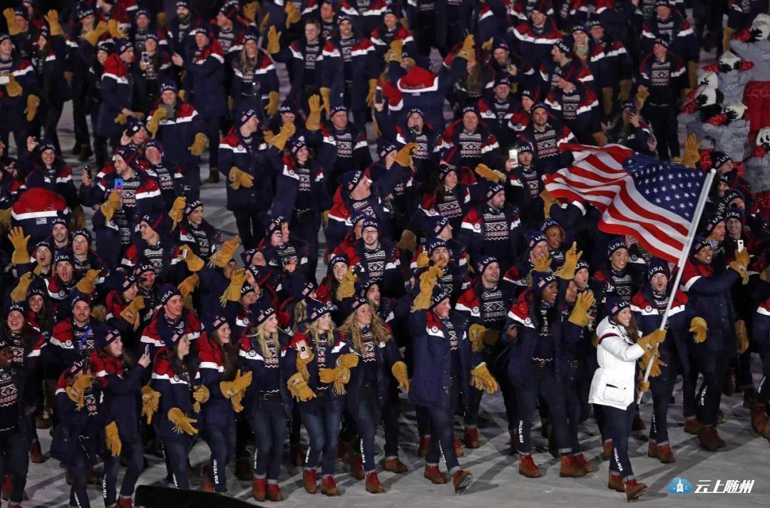 美国代表团参赛阵容庞大,旗手是索契冬奥会铜牌获得者、第4次参加奥运会的无舵雪橇女将伊尔林·哈姆林。值得一提的是,美国冬奥代表团的开幕式旗手是由该国8个冬季运动协会各推举的一名候选人,通过投票来产生的。由于这次投票打成了4比4平,所以由哈姆林担任旗手最终是由投掷硬币决定的。