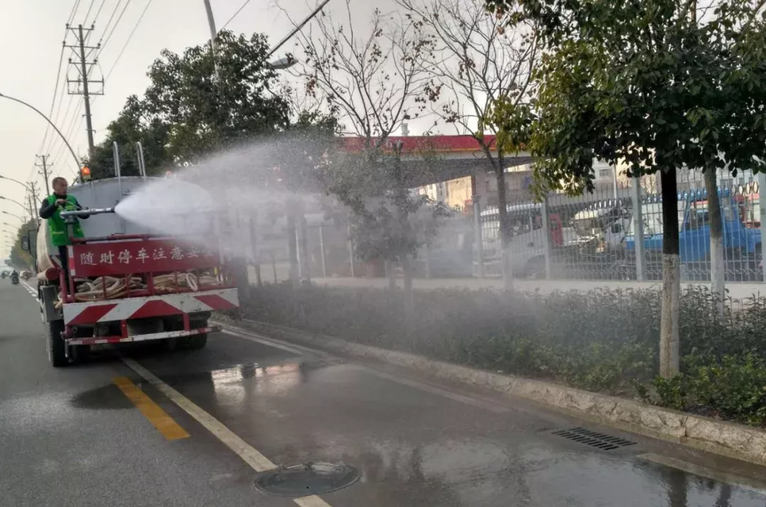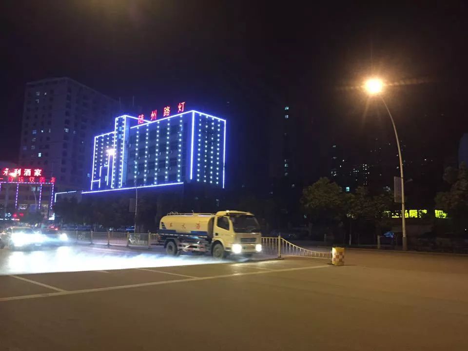 龙吉顺公司夜间在交通大道洒水除尘作业