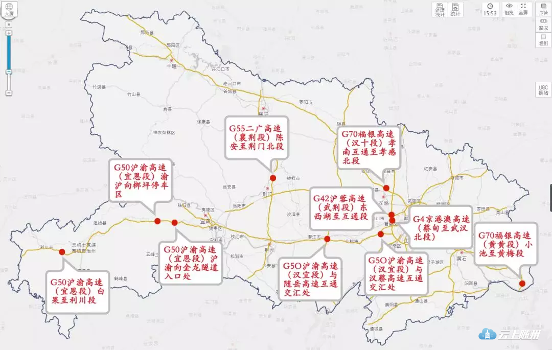 G50沪渝高速(汉宜段)与随岳高速互通交汇处