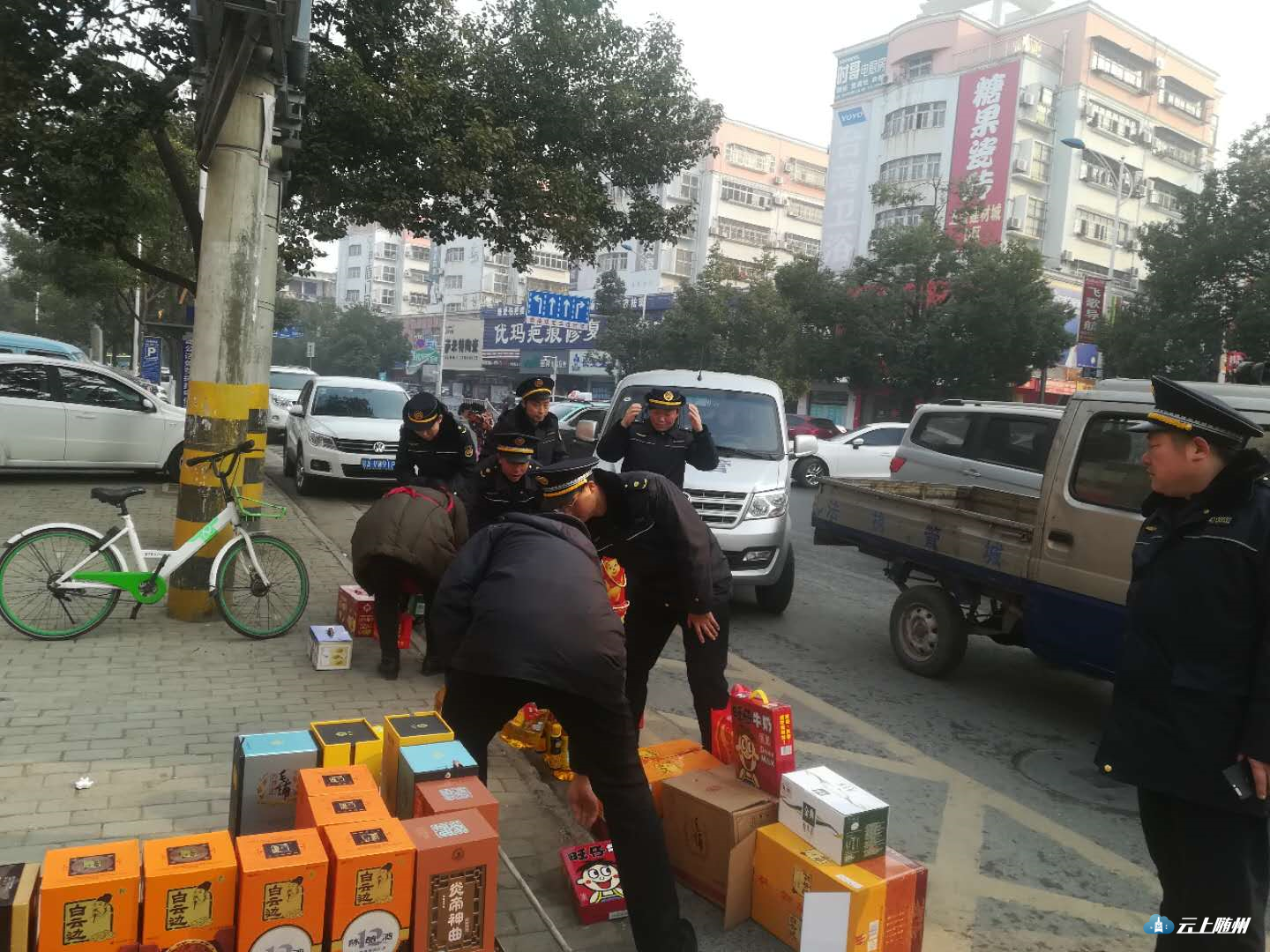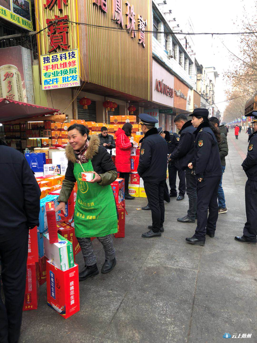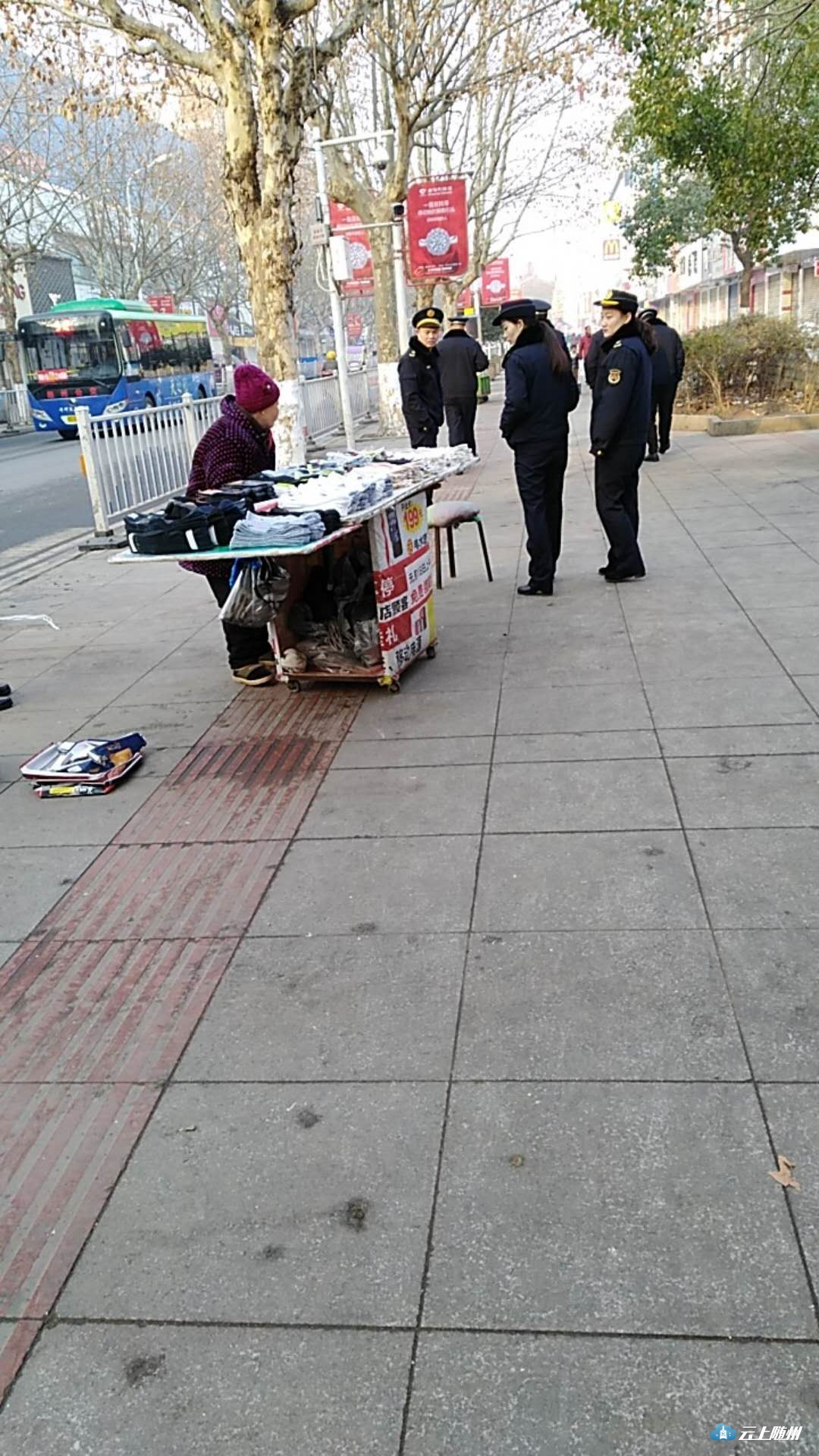 正月初一早上,市城管综合执法局城区分局全体人员对城区占道经营行为进行管理和规范,秩序井然。