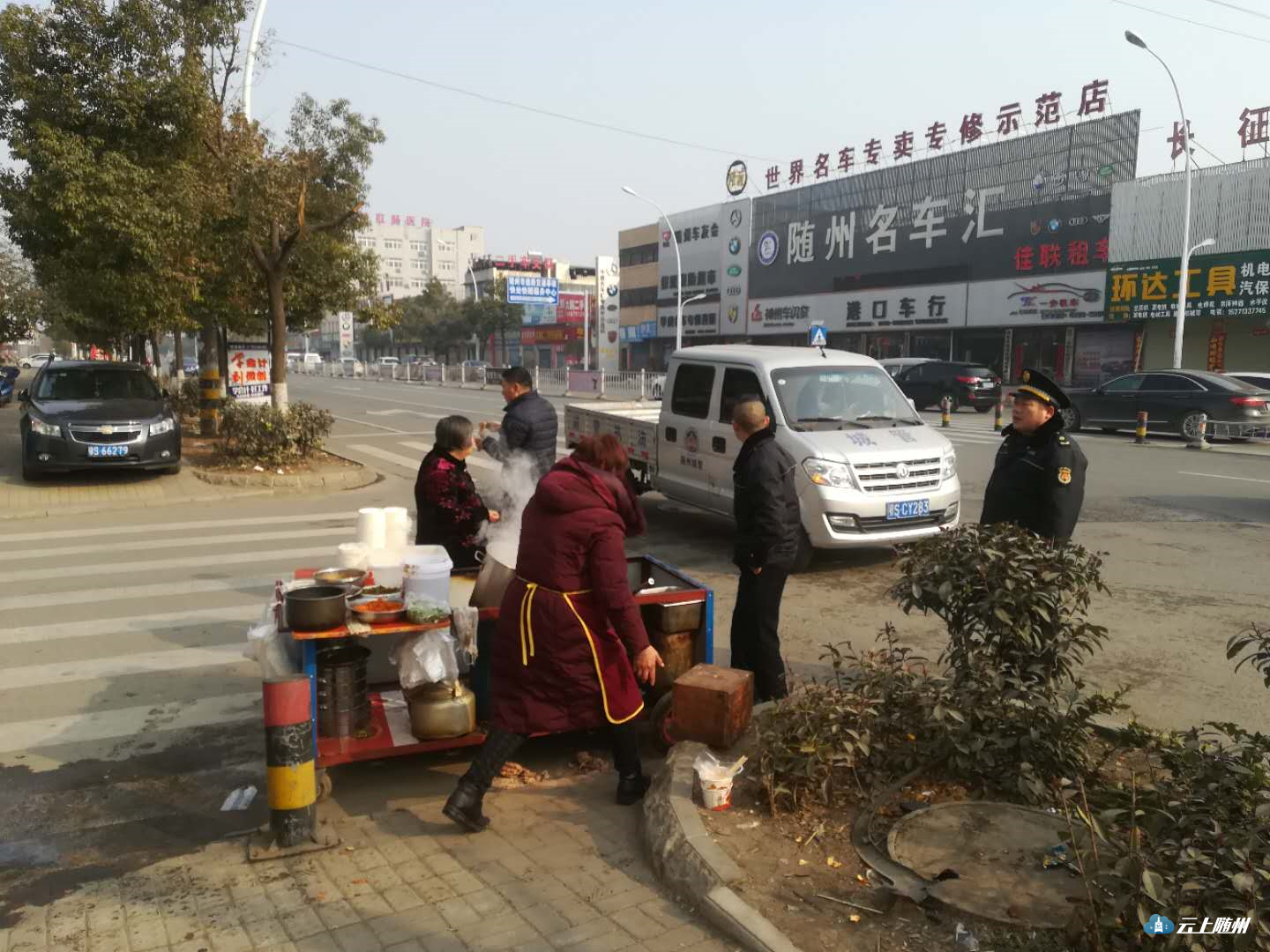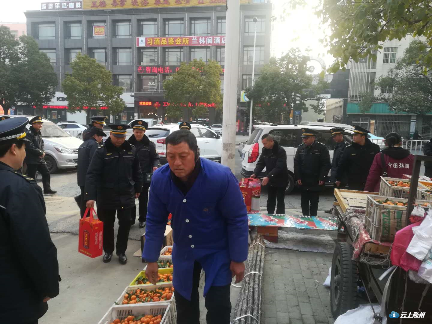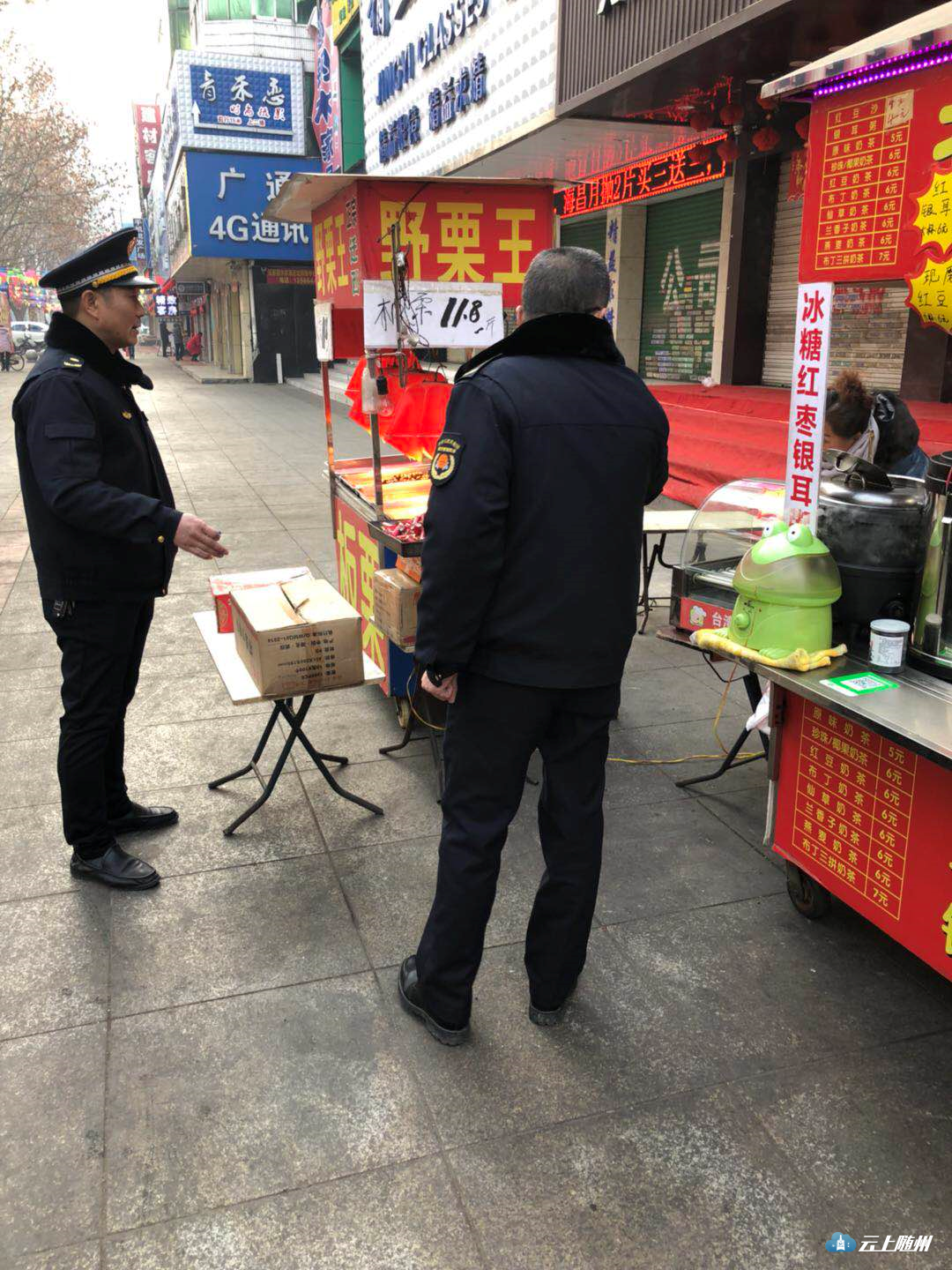 正月初一早上,市城管综合执法局城区分局全体人员对城区占道经营行为进行管理和规范,秩序井然。