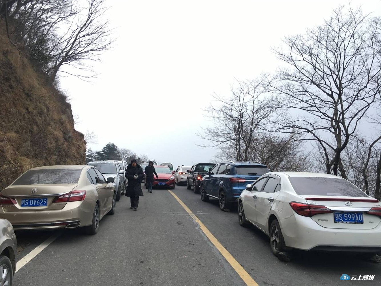 2月15日(除夕)上午10时许,到大洪山的游客信众就接踵而至。由于景区放开自驾,众多的游客信众选择自驾上山。赶上艳阳高照的好天气,仍被积雪覆盖的山岭撒上一片金色的阳光,甚是壮美。两天来,不断有游客或自驾或徒步上山顶,自山脚一路走来,车辆在路上排起长龙,形成了一道靓丽的风景线。一路而上的游客不时停车驻足,拿出相机定格美好的瞬间。灵官垭处,众多信众还选择步行祈福古道登临宝珠峰顶。慈恩寺里,彩旗飞扬,灯笼高挂,梵音阵阵,香烟袅袅,一派祥和的景象。四方游客礼佛敬香、登高望远,不亦乐乎。