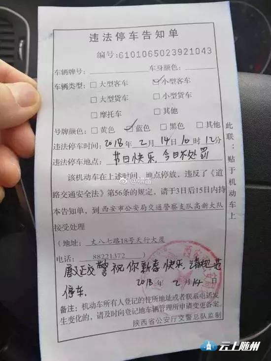 2月14日,来自陕西西安交警一张特别的《违法停车告知单》,引起网友热议,并迅速在朋友圈刷屏。