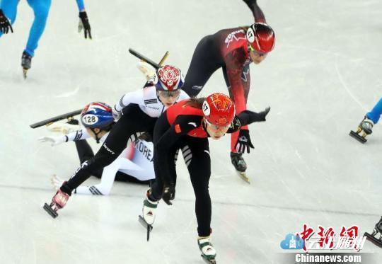 女子3000米接力比赛,韩国队摔倒瞬间。