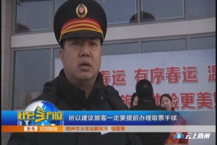 【采访】随州市火车站副站长 钱国强:关键一个是携带有效证件,第二是提前到站,第三办理提前办理取票,因为目前从道路交通状况来看,堵车现象比较严重,所以建议旅客一定要提前办理取票手续,同时一定要提前到站,这样避免影响出行。
