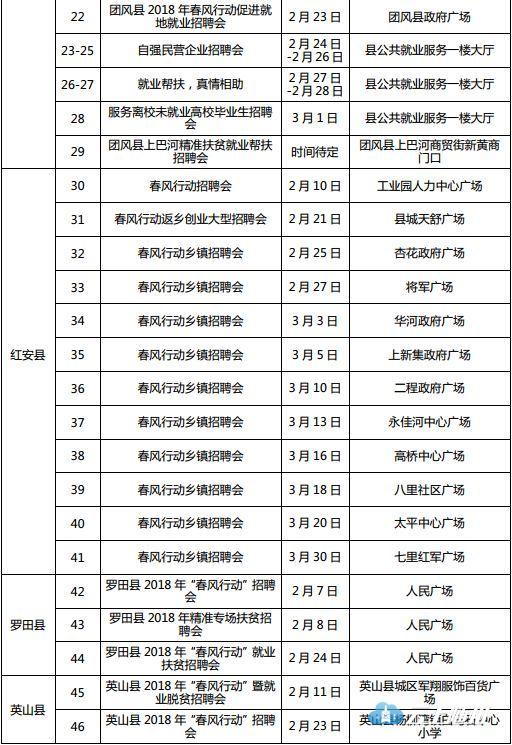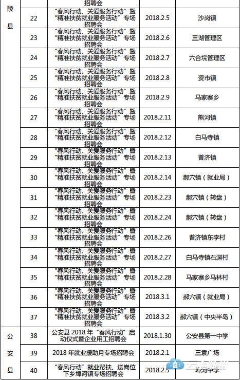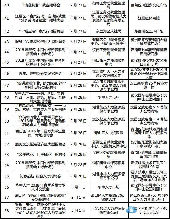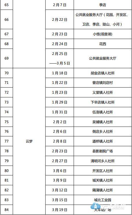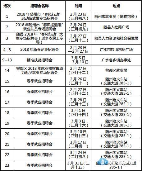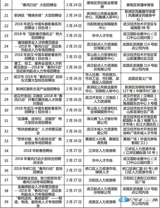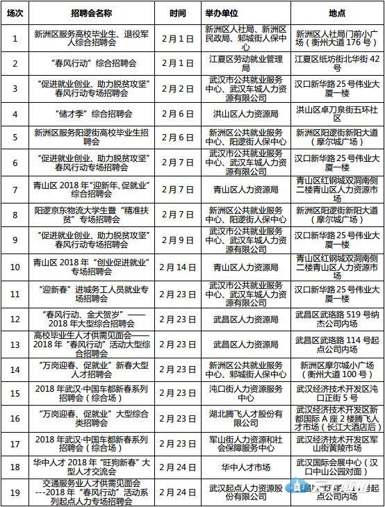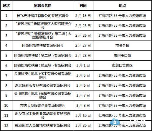 2月7日至3月6日,孝感城区人民广场、火车站、孝感东站及孝南区肖港、三汊、毛陈等乡镇(场)陆续开展系列招聘活动共23场。
