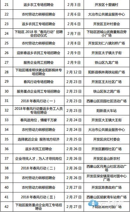 黄石将举办“春风行动”系列招聘会100余场,预计提供岗位20万余个,还将组织重点用工企业赴恩施、昆明、咸阳三地开展专项招工。