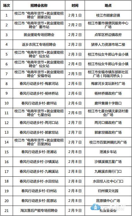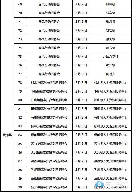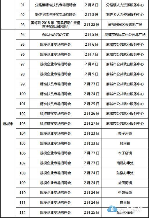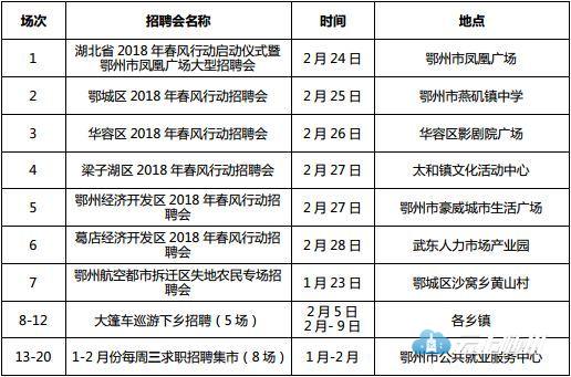 黄冈市将举办系列招聘活动131场次,拟组织进场招聘企业1300余家,提供就业岗位近8万个。2月26至28日,3月7日至8日将相继举办新春招聘会。
