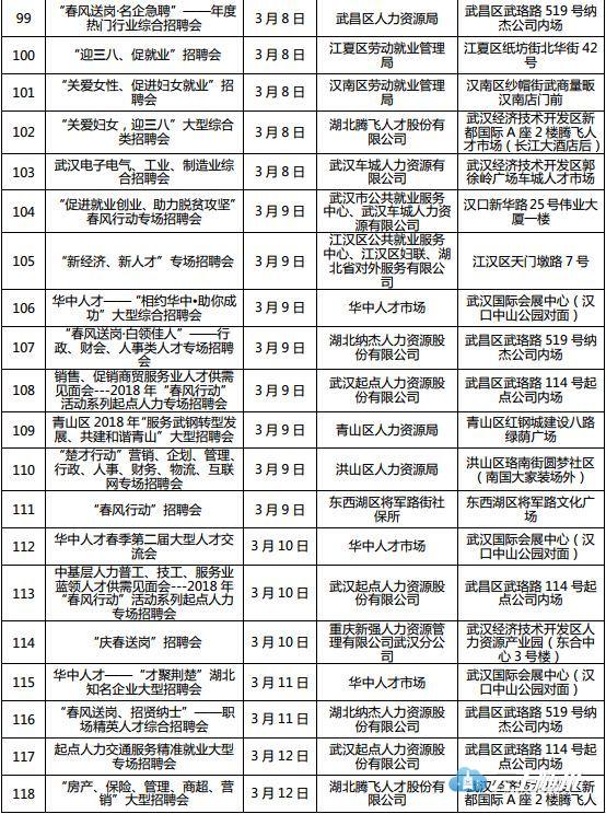 “春风行动”范围涉及湖北17市州,全省将组织各种专场招聘会1222场(其中精准扶贫专场招聘会401场),参加招聘会的企业约4.27万家,提供就业岗位约128.5万余个。与去年相比,提供的就业岗位增加了33.5万个。