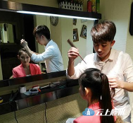 记者也走访了几家高校附近的造型室。中传附近一位店主向记者表示,每年初试大概会给200-300个学生化妆,平均每天要为三四十位考生化妆。艺考期间店里特别忙,很多考生都要来化妆,“如果没有提前预约,怕是化不上”。