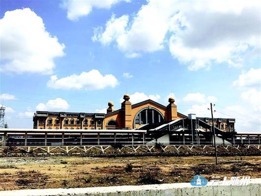 图文:从埃塞发往吉布提的火车缓缓通过中国企业修建的亚的斯亚贝巴拉布火车站。