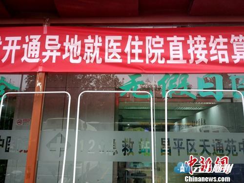 资料图:北京一家医院门口悬挂着开通异地就医直接结算的横幅。中新网记者 李金磊 摄