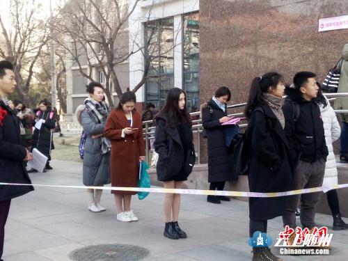 2月27日,北京电影学院2018年艺考初试开考,图为等待进入考场的考生们。 中新网记者 翟璐 摄