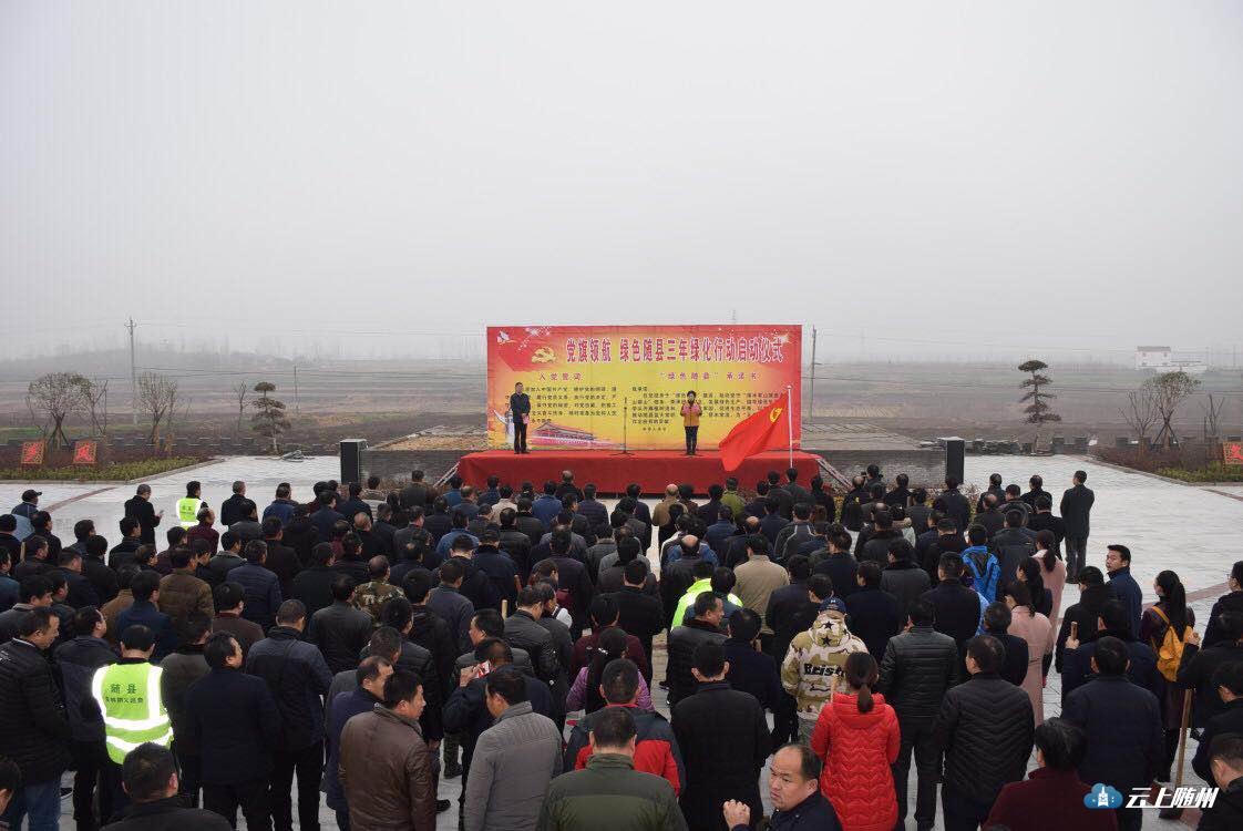 这是随县“党旗领航•绿色随县三年绿化行动”活动现场。3年来,该县深入贯彻绿色发展理念,大力开展“绿满随县”行动,完成造林40余万亩,实现了“资金大投入、规模大增加、成效大提升”,生态建设成效显著。