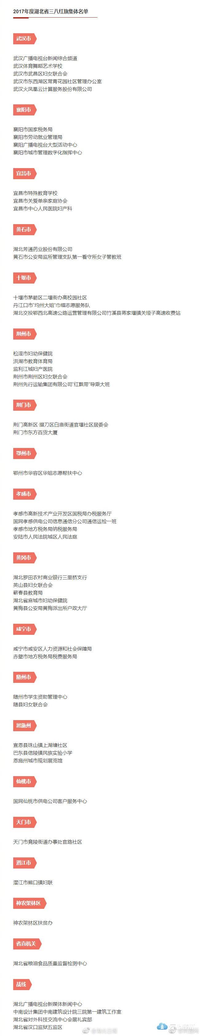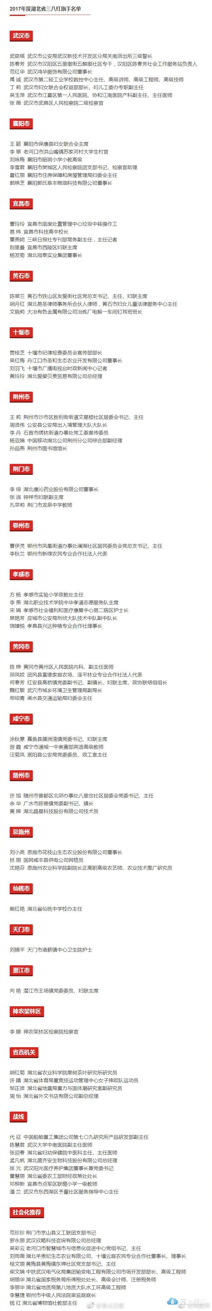 今天上午,全省各界妇女纪念“三八”国际妇女节108周年大会在汉召开。会上,100个集体、170名个人受到表彰。其中,省妇联决定授予胡志红等10名同志“湖北省三八红旗手标兵”荣誉称号,授予王颖等80名同志“湖北省三八红旗手”荣誉称号,授予宜昌市特殊教育学校等50个单位“湖北省三八红旗集体”荣誉称号。戳表彰名单↓↓,看有没有你认识的人。