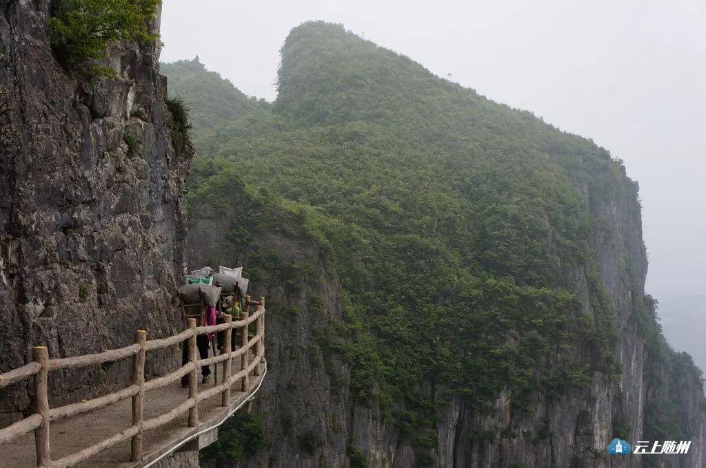 这条“险绝”栈道,就建在海拔1700余米的悬崖绝壁山腰间,118级石阶,仿佛与绝壁融为一体。