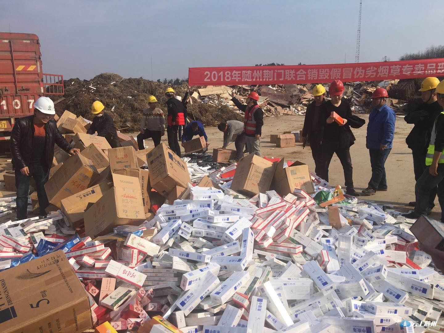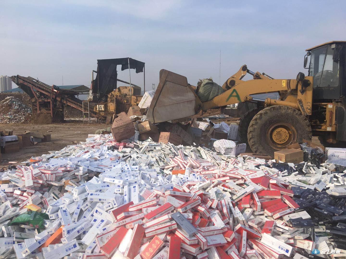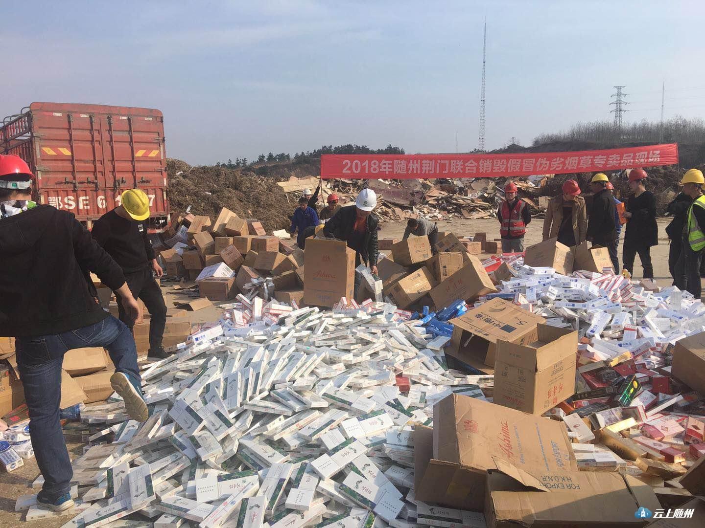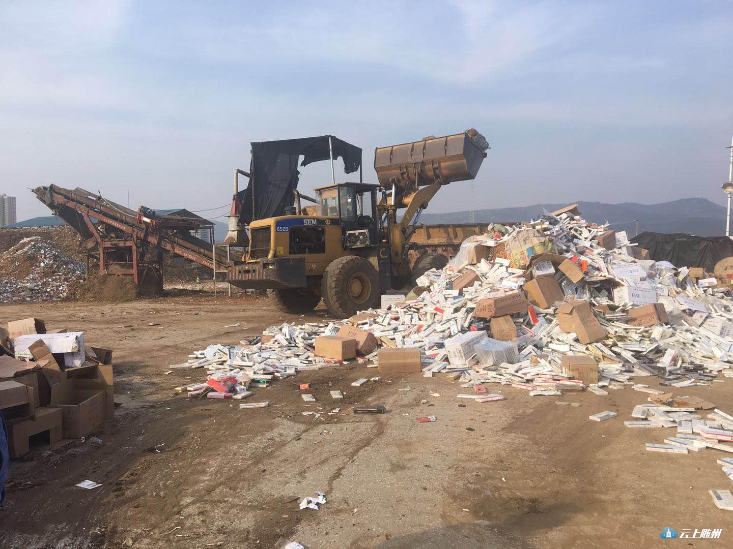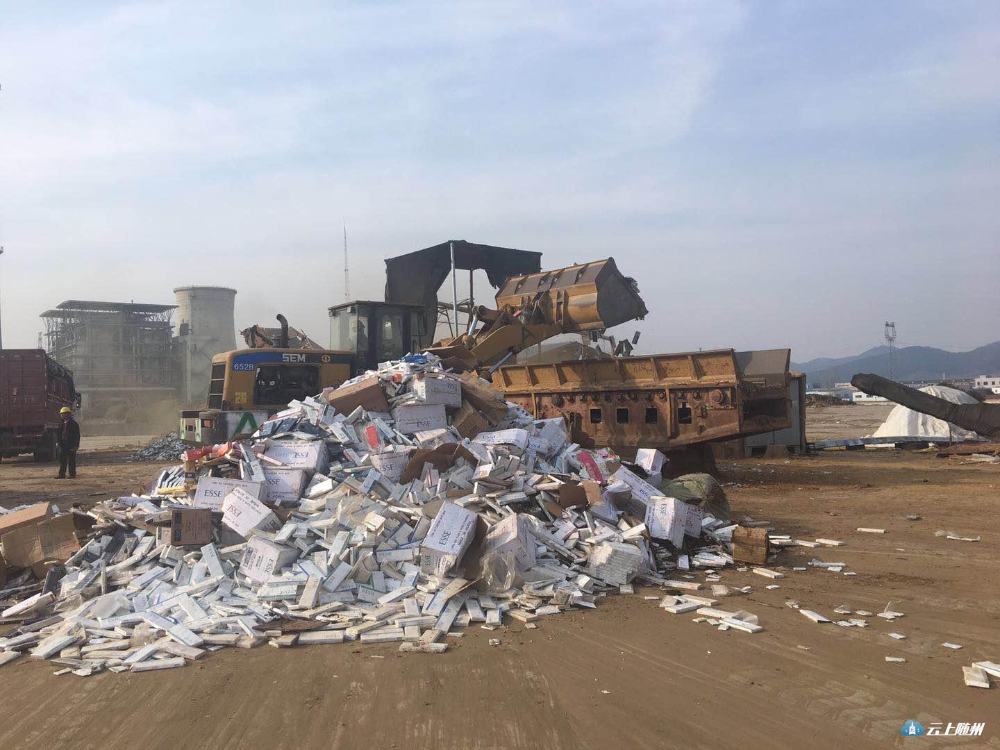 随州烟草专卖局集中销毁近两年查获的一批假冒伪劣烟草专卖品,其中假烟、走私烟3.6万多条,无使用价值烟叶22.34吨,总价值534万元。销毁地点选取京山火力发电厂,先粉碎再焚烧发电,环保节能无污染。