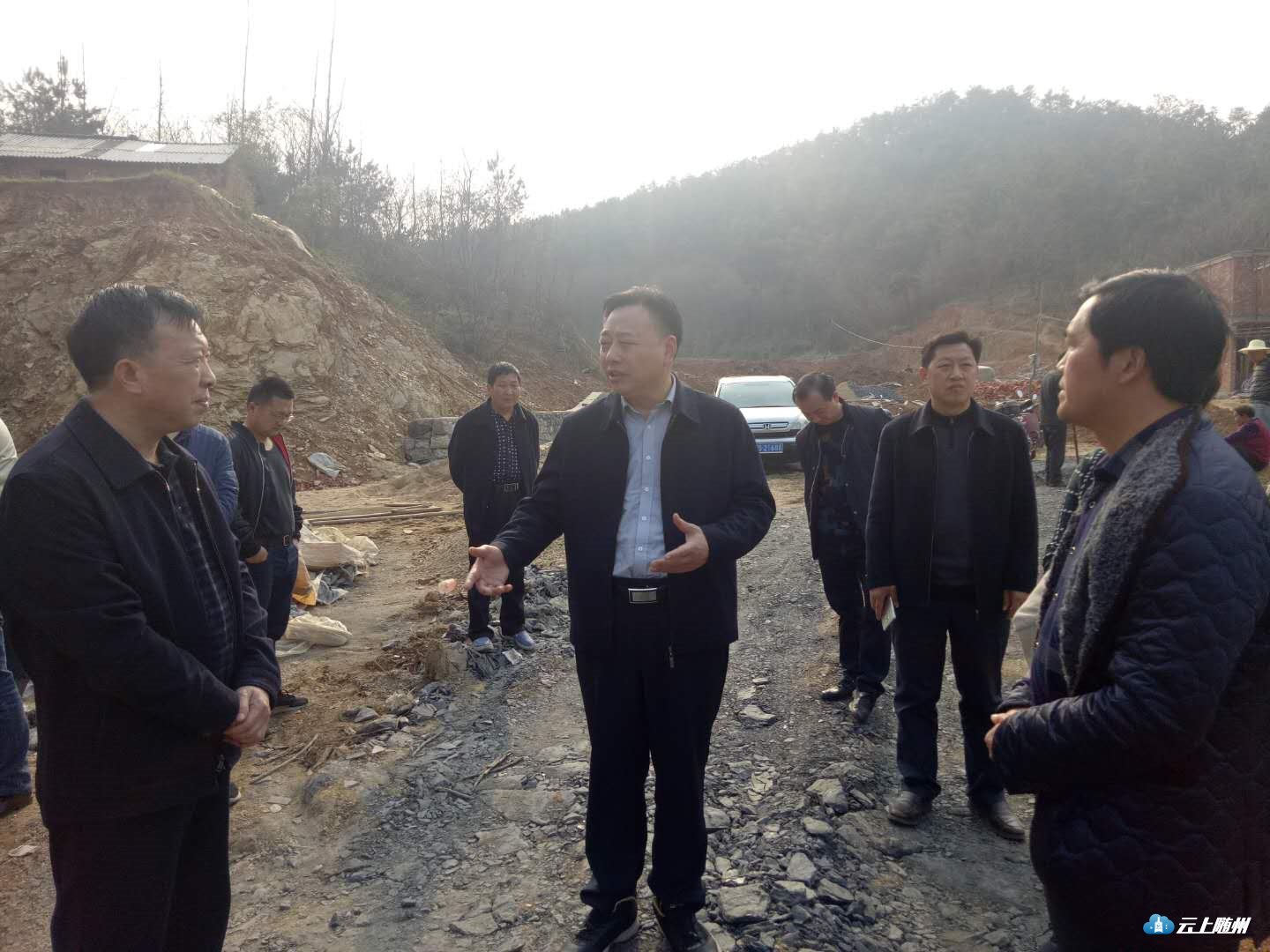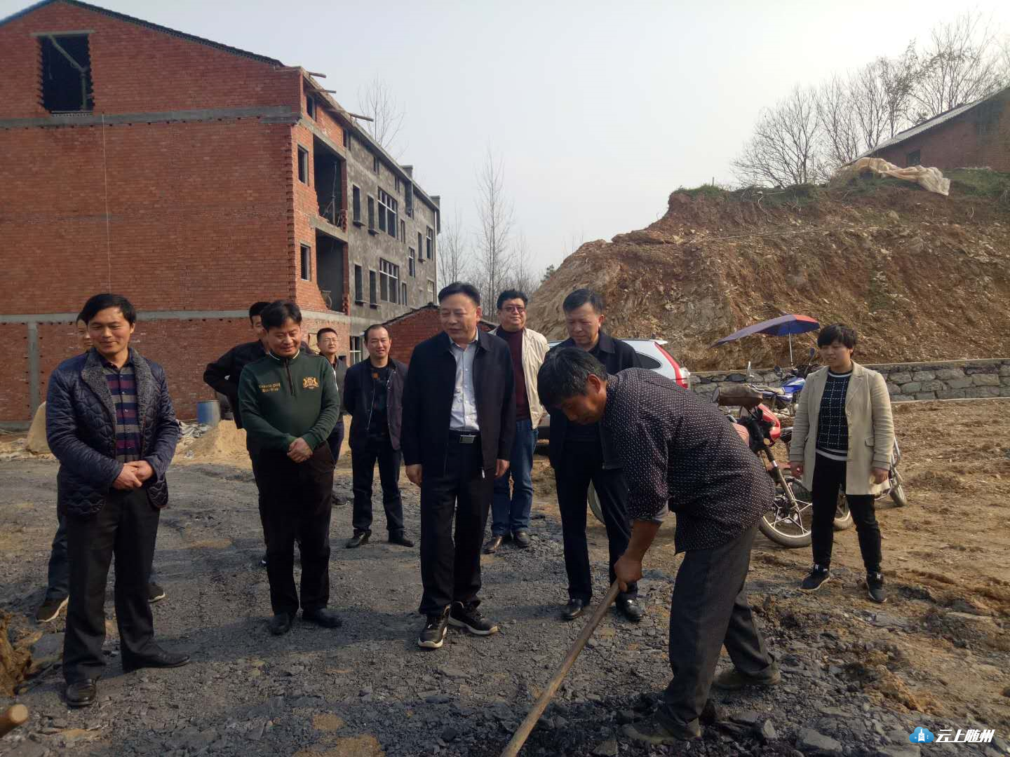 曾都区区长张健到洛阳镇珠宝山村预防地质灾害安置点查看搬迁房屋建设情况