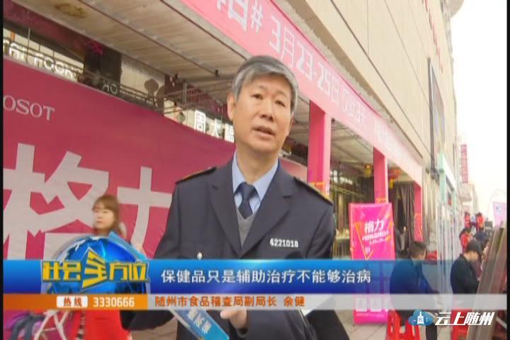 【采访】随州市食品稽查局副局长 余健:保健食品我们要认准是不是有蓝帽的标识 ,国家卫生部批准的文号,保健食品无论介绍它的药理作用和适应症,因为保健品只是辅助治疗不能够治病,所以现在很多中老年人朋友参加了健康中心进行的虚假宣传,免费赠送鸡蛋面条等等,希望中老年朋友千万不要上当受骗,如果发现药品欺骗行为,这样的情况,希望中老年朋友向我们进行投诉举报,拨打12331我们将进行维权,对他们的违法行为进行查处。