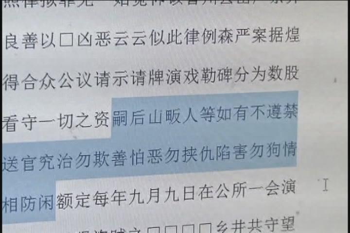 【采访】蒋天径:不准上山砍树,找柴都不行,都要注意这个事情,不许带镰刀上去,如果说违禁了以后,小情况,村里就处理了,大的问题就捆绑见官,绑起来送到官府惩治。