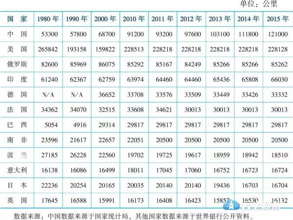 中国与世界主要国家铁路对比