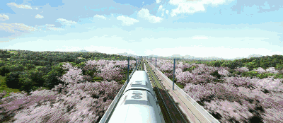 复兴号奔驰在祖国广袤的大地上,高铁车轮滚动出崭新的中国画卷。