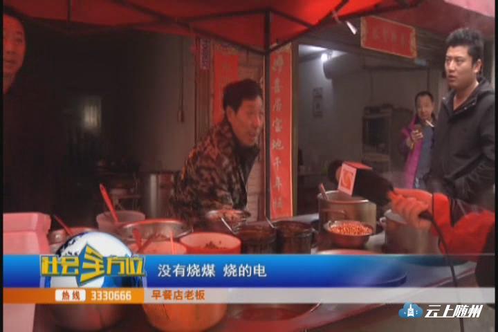 (采访:早餐店老板)没有油烟子,就是蒸汽,没有烧煤,烧的电。