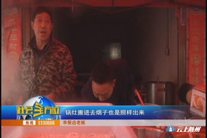 (采访:早餐店老板)锅灶搬进去油烟也是照样出来,不会在屋里消化。