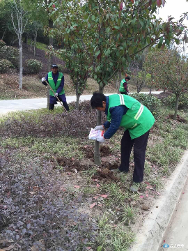 此次病虫害防治主要是为防治去年秋冬季在树下越冬或春季隐藏到地面产卵的草履蚧等害虫在春季沿树干爬行转移,危害树木枝叶。采用“根部埋药”技术,这项防虫技术相比“喷药”法,减少了环境污染及人畜危害,且药效时间长,效果明显。