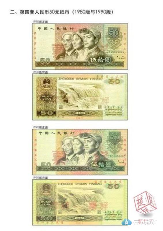 据悉,第四套人民币100元纸币,其主色调为蓝黑,正面图案为毛泽东、周恩来、刘少奇和朱德四位领导人的浮雕像,背面图案为井冈山主峰;第四套人民币50元纸币,其主色调为黑茶,正面图案为工人、农民、知识分子头像,背面图案为黄河壶口。有网友表示,已有好多年没有见过这些旧币了。
