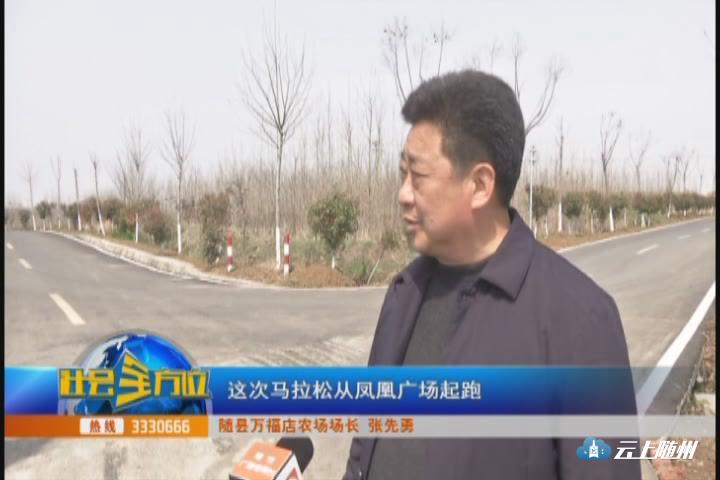 (采访:随县万福店农场场长张先勇)这次马拉松从凤凰广场起跑,途经枯树湾,龚家湾,潘家湾,到这边的槽门湾,到这个地段分两部分,四分马从这边上国道原路回去,微马从这边直接回到我们的起始点。