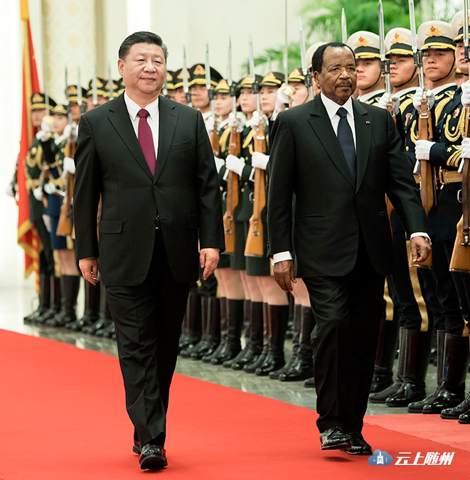 3月22日,国家主席习近平在北京人民大会堂同喀麦隆总统比亚举行会谈。这是会谈前,习近平在人民大会堂北大厅为比亚举行欢迎仪式。新华社记者 李涛 摄