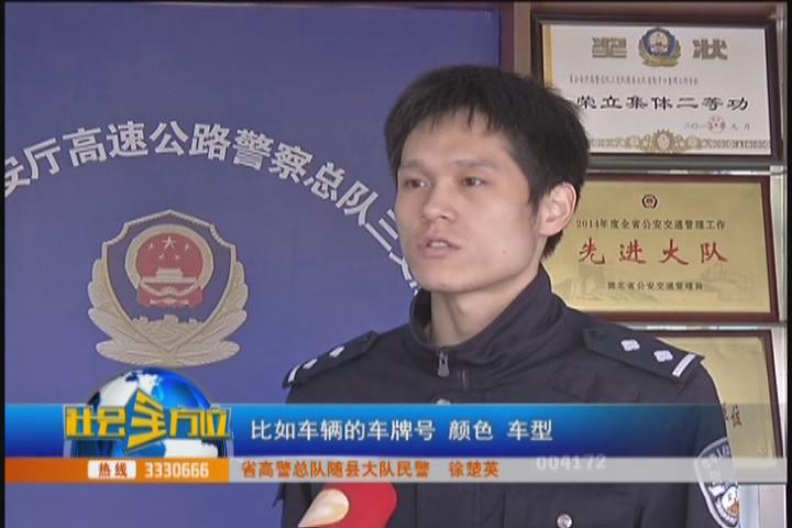 【采访】省高警总队随县大队 民警 徐楚英:到下午4点58分,在接到报警后37分钟,京山路段拦截点刚刚设置完毕,现场民警拦截到的第一辆经过此地的车,正是嫌疑车辆。