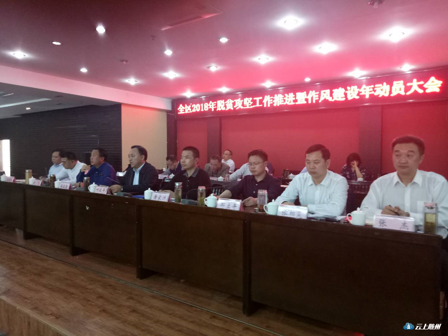 3月28日,曾都区召开全区2018年脱贫攻坚工作推进暨作风建设年动员大会。区委书记何运平,区政协主席黄家洲,区委副书记徐正友,区领导邱立平、刘飞、张相炎、王晓义、张杰、张卫洪、章世家、付元国、王志坚、段红琴、张琳琳、张玉大、金培富、齐荣参加会议。