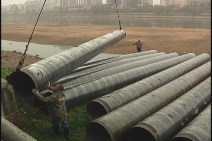 在位于二桥头的施工现场,记者看到,工人师傅们正利用一台吊车,将一根根巨大的黑色管道从车上吊起,缓缓运送至河堤下,在裸露的河床上整齐排列好。记者了解到,此次管网改造属于一桥改造配套工程,一桥爆破后,桥两侧原有的供水管也将随之报废,而这两条管道隶属于南郊片区的供水主管网,为了不影响南郊片区的正常供水,在一桥爆破之前,供水部门对南郊片区的供水主管网进行了更改线路、重新铺设。
