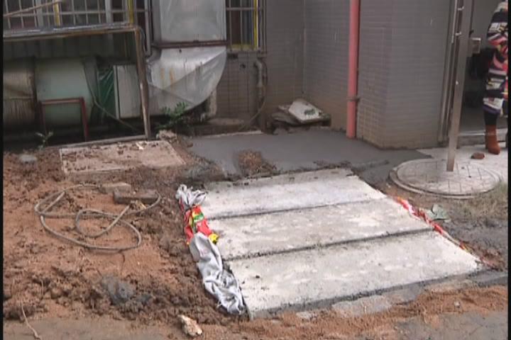 在小区5号楼旁,多户居民带记者来到这家小区餐馆旁。一位居民指着住宅楼大门旁边,一处刚刚施工完的地面告诉记者,为了餐馆的日常排污,在住宅楼背面原本有一处化粪池,可最近,餐馆竟然在住宅楼正面大门进出口又挖了一处化粪池,这让楼上的居民们都感到很反感。