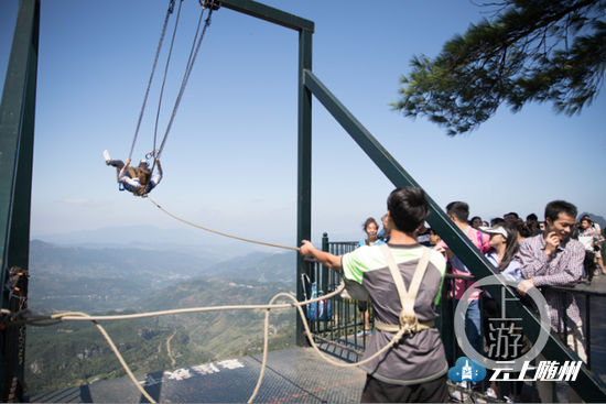 △把游客从悬崖秋千上荡出去