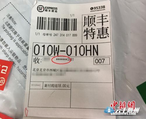 一张快递单上,收件人手机号码被部分隐藏。