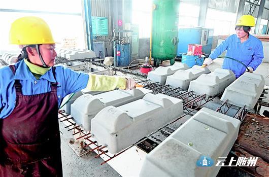 3月22日,汉十高铁随州制枕场一派繁忙景象,整齐划一的高铁轨枕从流水线上下线,被运往高铁建设现场。中铁十一局随州制枕场承担汉十高铁孝感至十堰段57万余根轨枕生产任务,目前已经完成40万根轨枕的生产,到6月,此段制轨枕任务将全部完成。(刘曙松 摄)