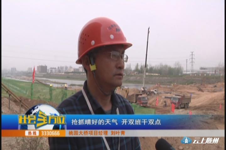 (采访:桃园大桥项目经理 刘叶青)下一步我们项目部将精心组织,抢抓晴好的天气,开双班干双点,迅速掀起施工高潮,力争在6月份完成桥梁下部构造,10月完成上部构造,年前完成全桥任务。