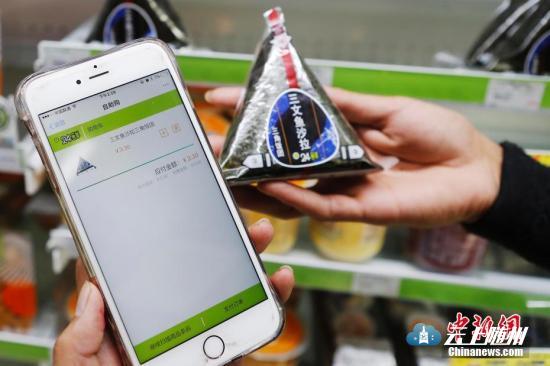 资料图:扫描商品条形码手机自助结账。 殷立勤 摄