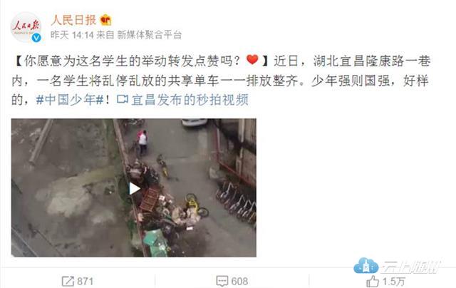 4月1日下午,人民日报官方微博转发了这则短视频,目前已有1.5万读者为这名男孩点赞。