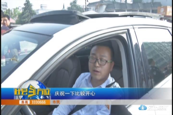 一些市民为祝贺大桥通车,专门将这个消息张贴在自己的小车前,开车从桥上经过。