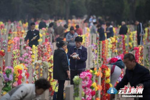 资料图:4月3日,山西省太原市,大批民众在墓园祭奠亲人。