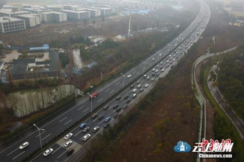 资料图:2月21日,大批车辆由北向南缓慢行驶在南京二桥高速公路上,绵延数公里。