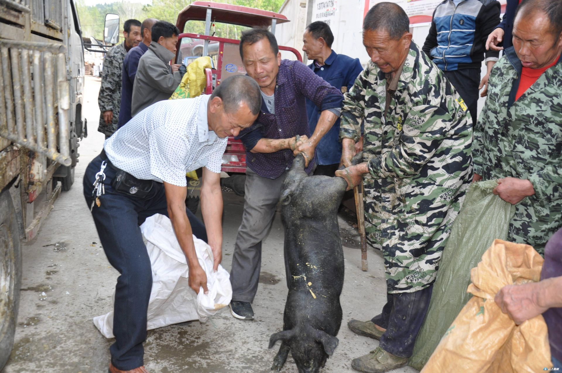 几天就在盼着了,送来的太及时了,太感谢了……4月3日,在大洪山风景名胜区2018年度精准扶贫黑猪集中分发现场,该区熊氏祠村村民储中富在领到2头黑猪后,喜悦之情难以言表。